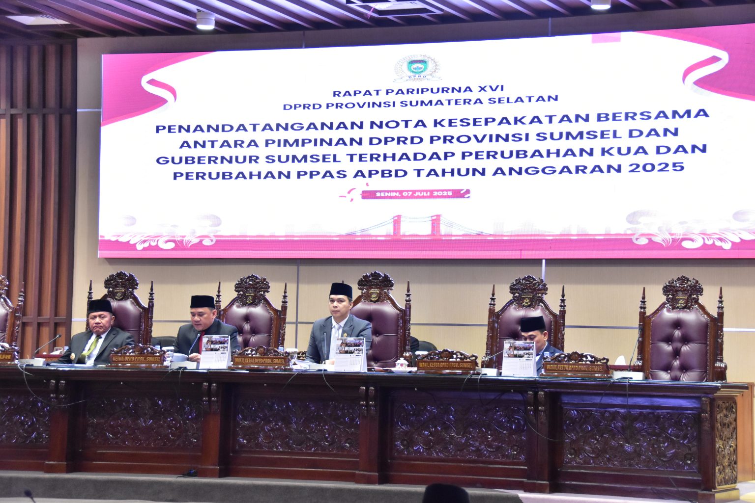 Rapat paripurna ini dipimpin oleh Wakil Ketua DPRD Sumsel, Raden Gempita, S.H., didampingi oleh Ketua DPRD Andie Dinialdie, S.E., M.M. serta Wakil Ketua DPRD H. Nopianto, S.Sos., M.M.. Hadir pula Gubernur Sumatera Selatan H. Herman Deru, S.H., M.M., Sekretaris Daerah Drs. H. Edward Chandra, M.H., Sekretaris DPRD H. Aprizal, S.Ag., S.E., M.Si., unsur Forkopimda, para kepala OPD, serta tamu undangan dari berbagai instansi.